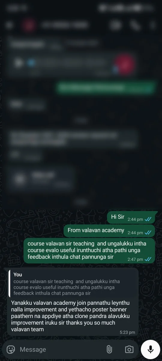 Tired of online courses that leave you lost? Valavan Academy brings real training, expert mentorship, and proven results — உங்கள் passion-ஐ profession-ஆக மாற்றுங்கள்!